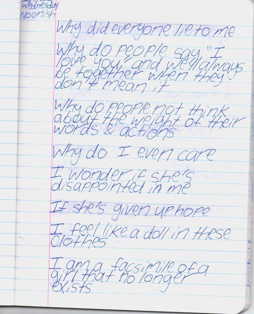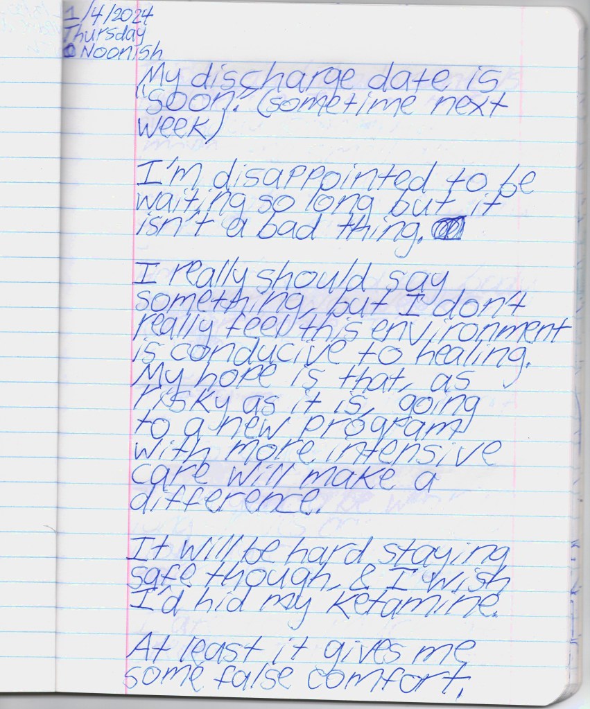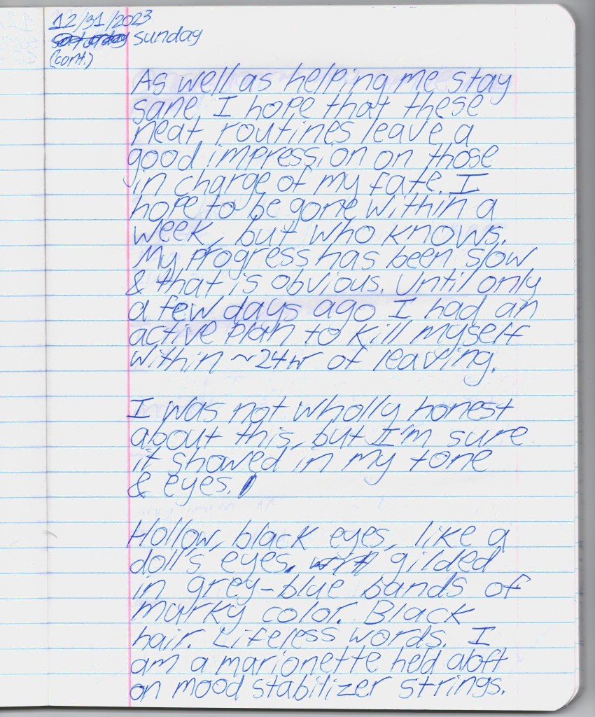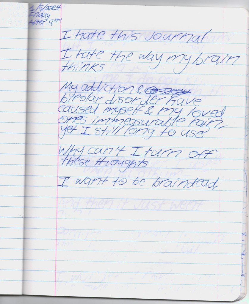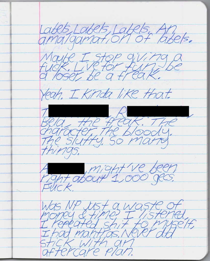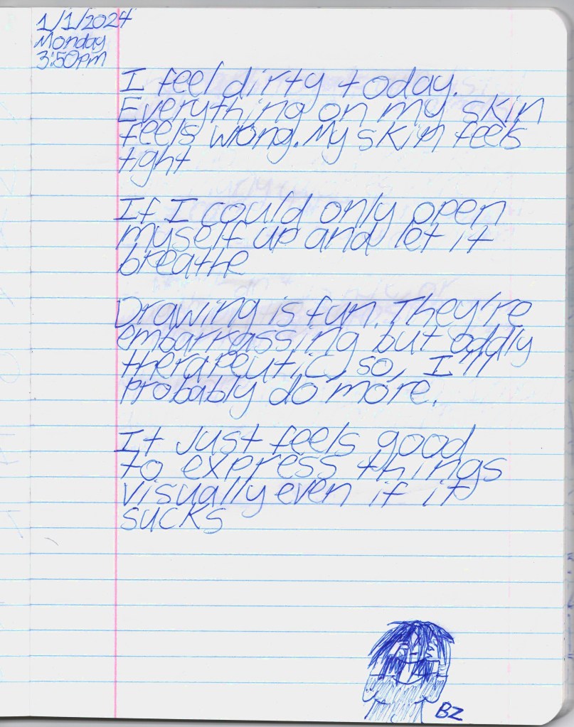 Bela & I were psych ward twins, BPDemon transgender ketamine fiends hospitalized for attempting suicide. Whether by chance or fate, we were brought together & immediately became inseparable. She discharged before me, headed to out-of-state residential, & gave me her journal to publish. THE BLEAK TIMES tells a sad story with a vague, pessimistic ending, but it’s only one brief chapter of our lives. Fortunately, neither of them ended here. We hope you find this strange piece of art to be illuminating, relatable, bizarre, humorous, fascinating, & disturbing. THE BLEAK TIMES is an exercise in vulnerability–without an audience, it cannot be called art. Thank you for your contribution to this project.