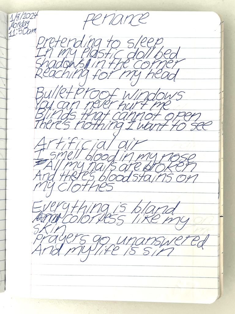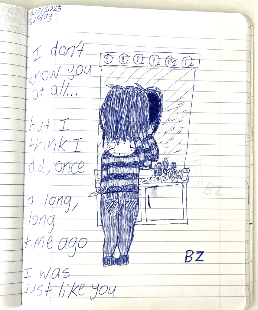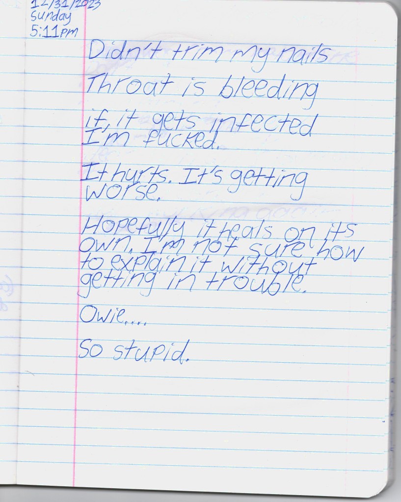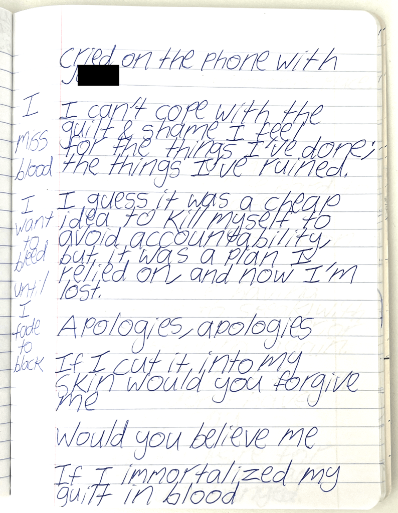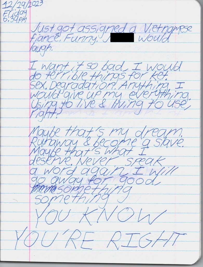 Bela & I were psych ward twins, BPDemon transgender ketamine fiends hospitalized for attempting suicide. Whether by chance or fate, we were brought together & immediately became inseparable. She discharged before me, headed to out-of-state residential, & gave me her journal to publish. THE BLEAK TIMES tells a sad story with a vague, pessimistic ending, but it’s only one brief chapter of our lives. Fortunately, neither of them ended here. We hope you find this strange piece of art to be illuminating, relatable, bizarre, humorous, fascinating, & disturbing. THE BLEAK TIMES is an exercise in vulnerability–without an audience, it cannot be called art. Thank you for your contribution to this project.