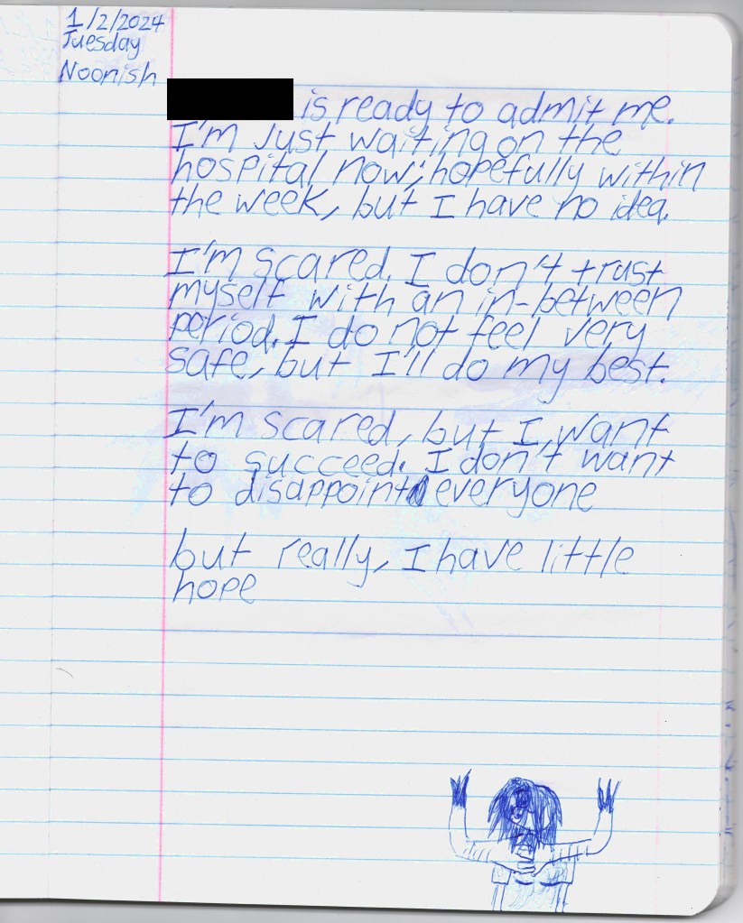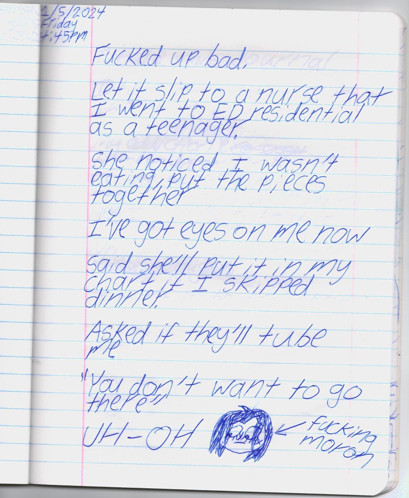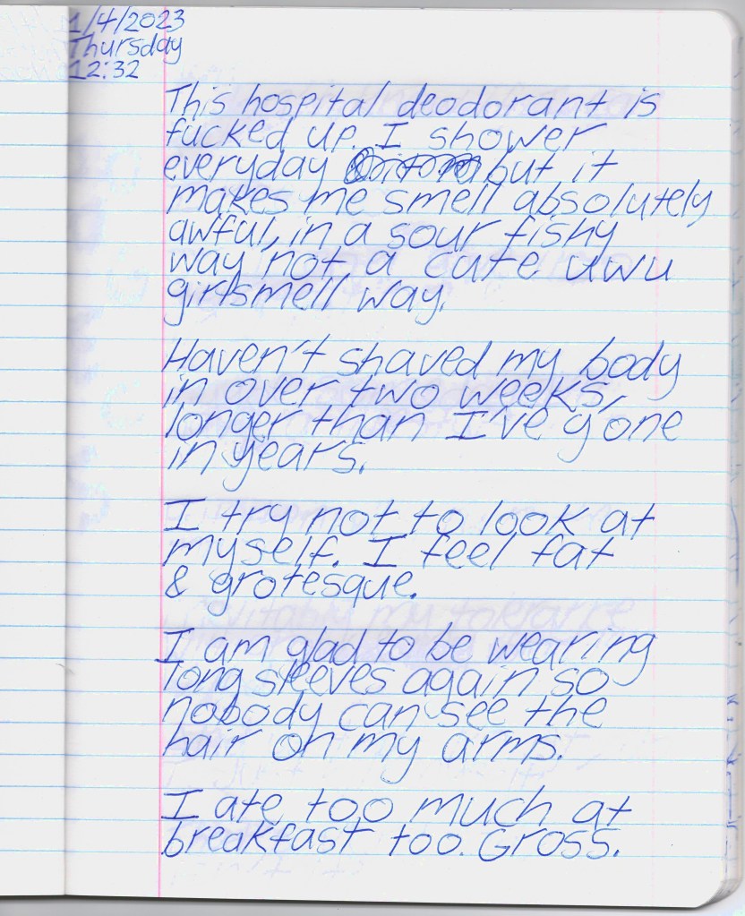 TW: suicide, self-harm, eating disorders, drug use, hospitals/psych wards, body dysmorphia, gender dysphoria